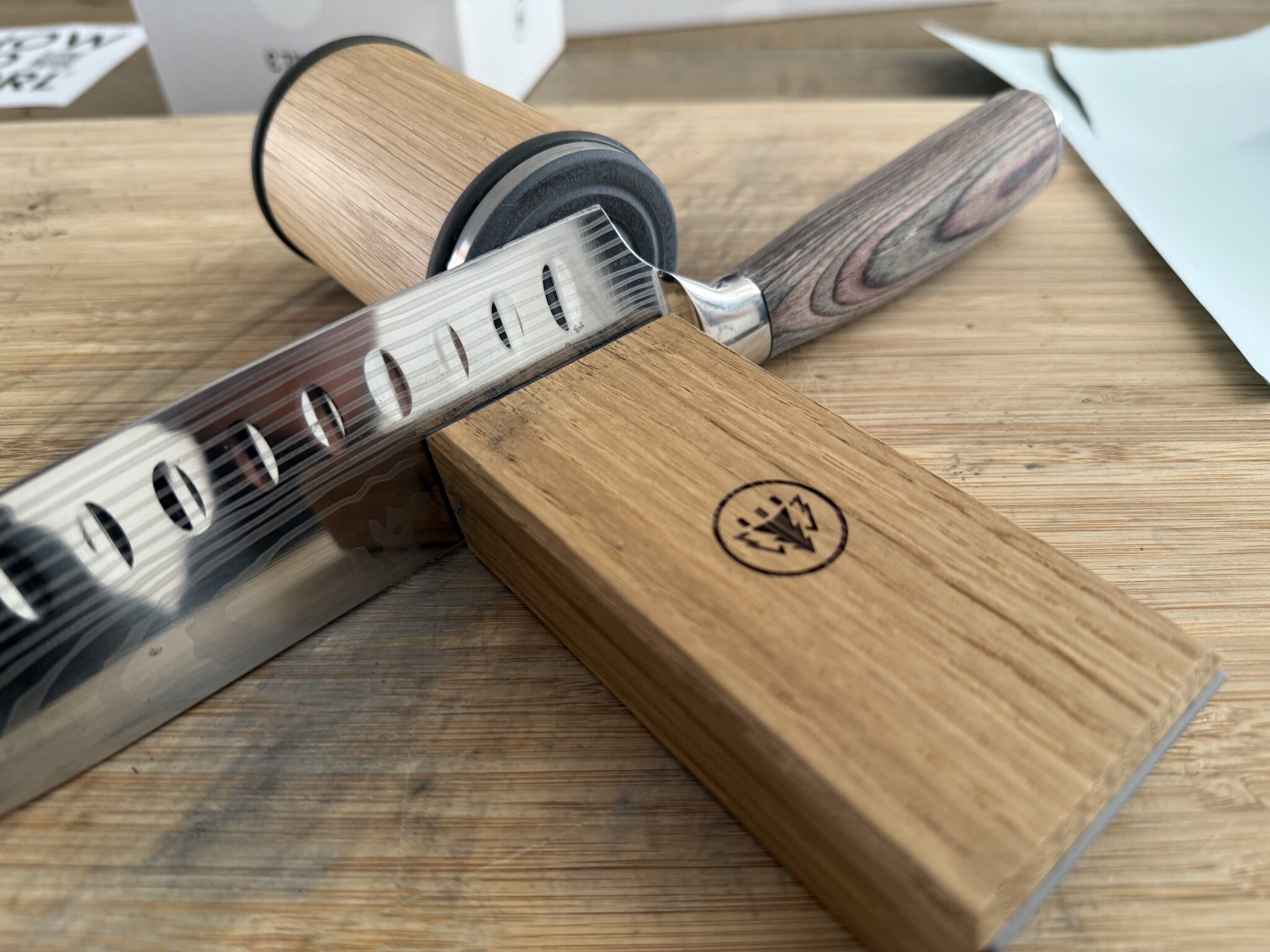 Ik ben erg te spreken over de HORL 3. Het concept is briljant eenvoudig, de uitvoering is hoogwaardig en het resultaat spreekt voor zich. De eikenhouten standaard is mooi genoeg om op je aanrecht te laten staan en dat is precies het punt, want als de slijper er altijd is pak je hem ook veel vaker. En dat is het geheim van goed messenonderhoud: consequent een paar rolbewegingen na elk gebruik, in plaats van wachten tot je mes echt niet meer snijdt.